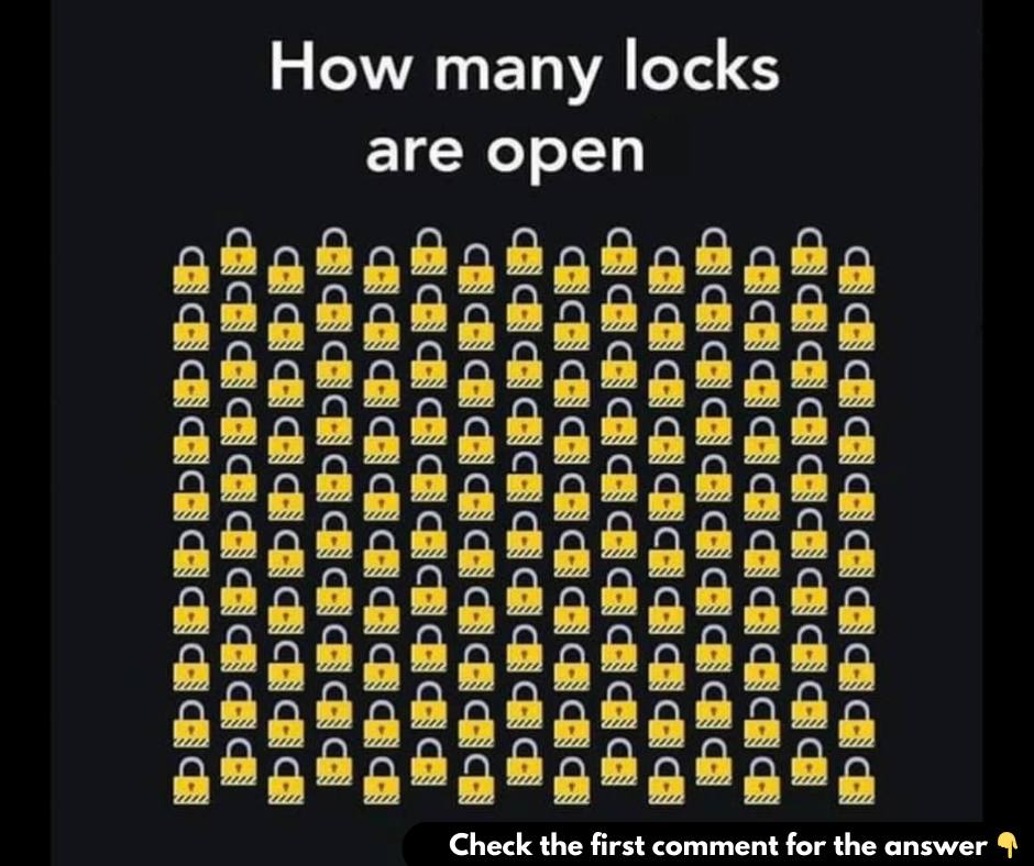Think you’ve got a sharp eye? This puzzle will test your observation skills! Can you count how many locks are open in this tricky image? Don’t rush – take your time, and when you’re sure of your answer, leave a comment below explaining how you spotted them all. Only the most observant will get it right! Let’s see how many of you can figure it out!